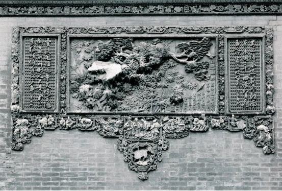 广州陈家祠大门外壁上嵌有巨型砖雕