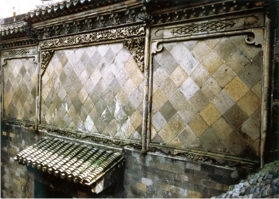 它们大都处在室外空间。面积大而平板,经过装点,就成为优美建筑的一部分,如:墙头上盖瓦,不仅防雨水渗透,瓦垄和瓦当还呈现出美丽的曲线;墙檐和基座砌上砖刻或石刻的浮雕就更加美观。