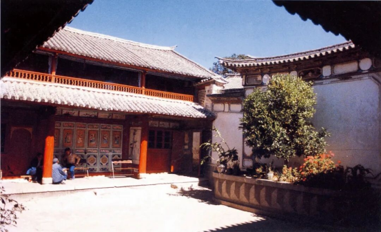巴蜀地区向西南方向不远即云南地区的丽江、大理,居住着白族、纳西族等少数民族。这里的民居充分利用当地丰富的大理石和卵石来建造房屋,特别偏爱“三坊一照壁”的住宅结构,也就是平面布局为正房和两间厢房即三坊,加上一照壁围成的封闭式院落。还有“四合五天井”,即其平面类似内地三合院、四合院等基本型式,但其建筑装饰集中在照壁、山墙、围屏、门、窗、梁枋等部位。