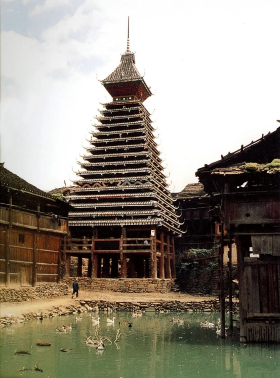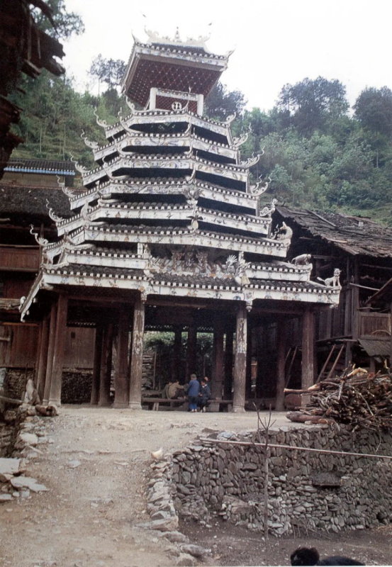 侗族鼓楼往往有三五层以至十多层,呈四面或六面、八面倒水、飞阁重檐,形如宝塔