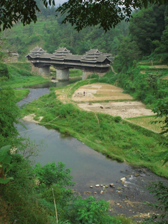 风雨桥多建于依山傍水之地,集廊、楼、亭、桥于一身
