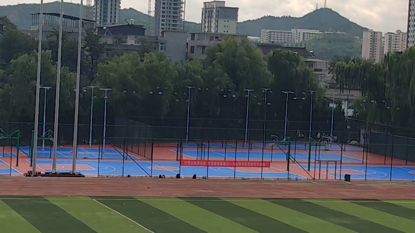 北新街校区田径场始建于2008年,使用年限较长,篮球场、网球场地面老化、设施陈旧,灯光照度不够,严重影响师生运动体验,且存在安全隐患。2025年暑期,学校以精准服务师生为出发点,精心策划并启动了田径场翻新改造工程。