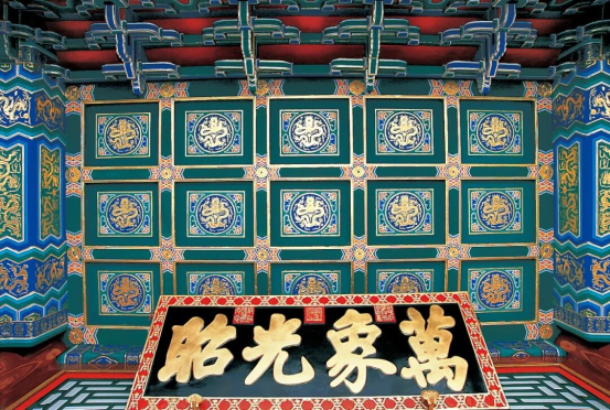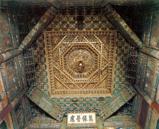 藻井安置在帝王御座和大佛宝座的上方(承德普陀宗乘之庙万法归一殿“斗四套叠八角型蟠藻井”)