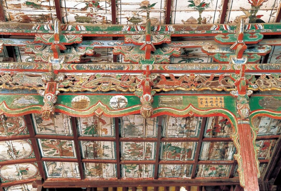 屋顶处层层向内缩进的圆形藻井,在民间尤是戏台、运用比较多