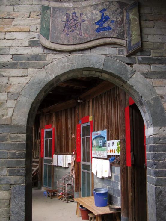 客家建筑的装饰只在局部点缀彩色砖雕及红色对联,质朴为美