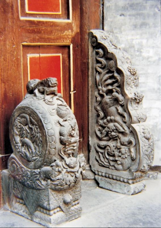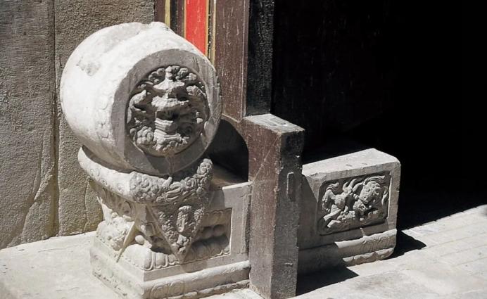 天津石家大院雕花门枕石和夹柱石